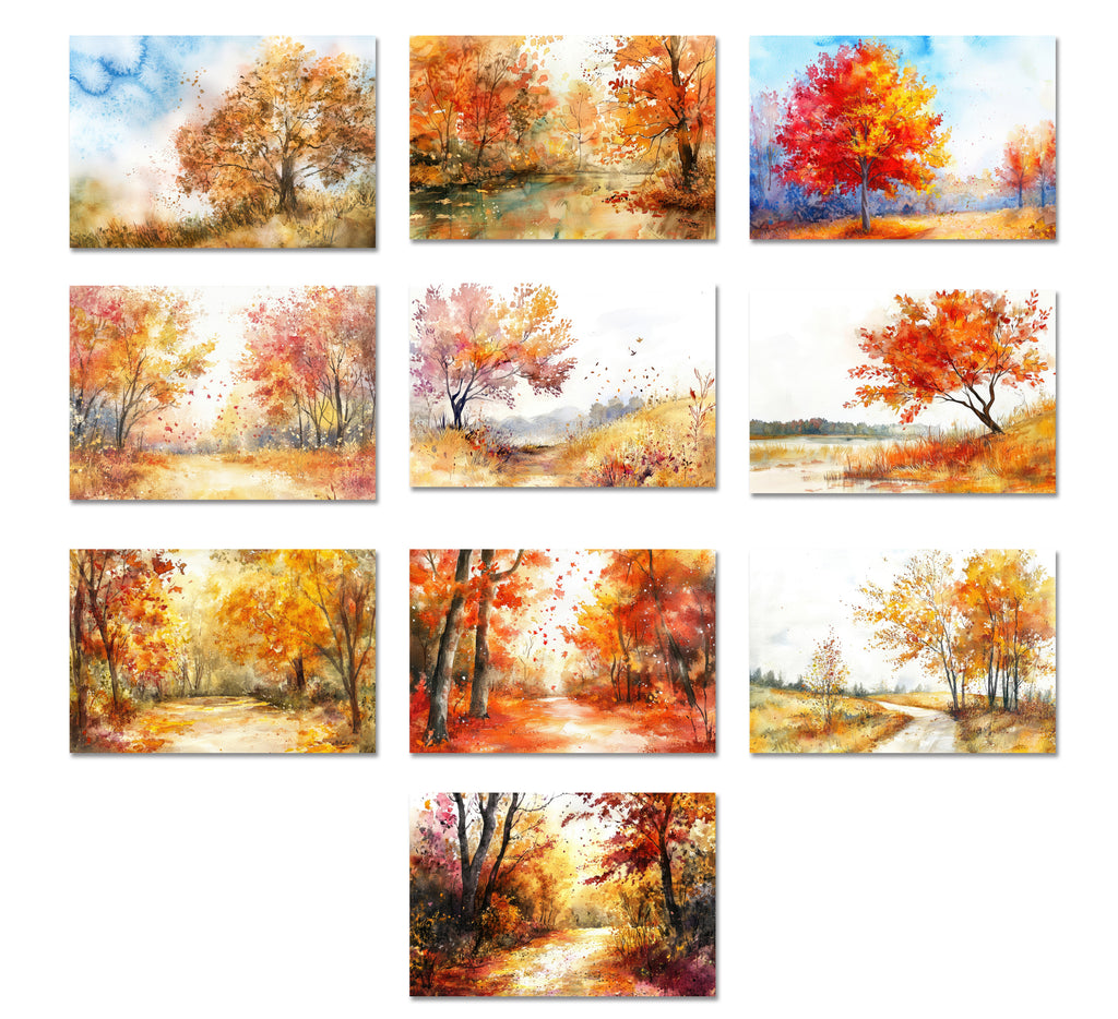 Set includes 10 handmade fall leaves cards