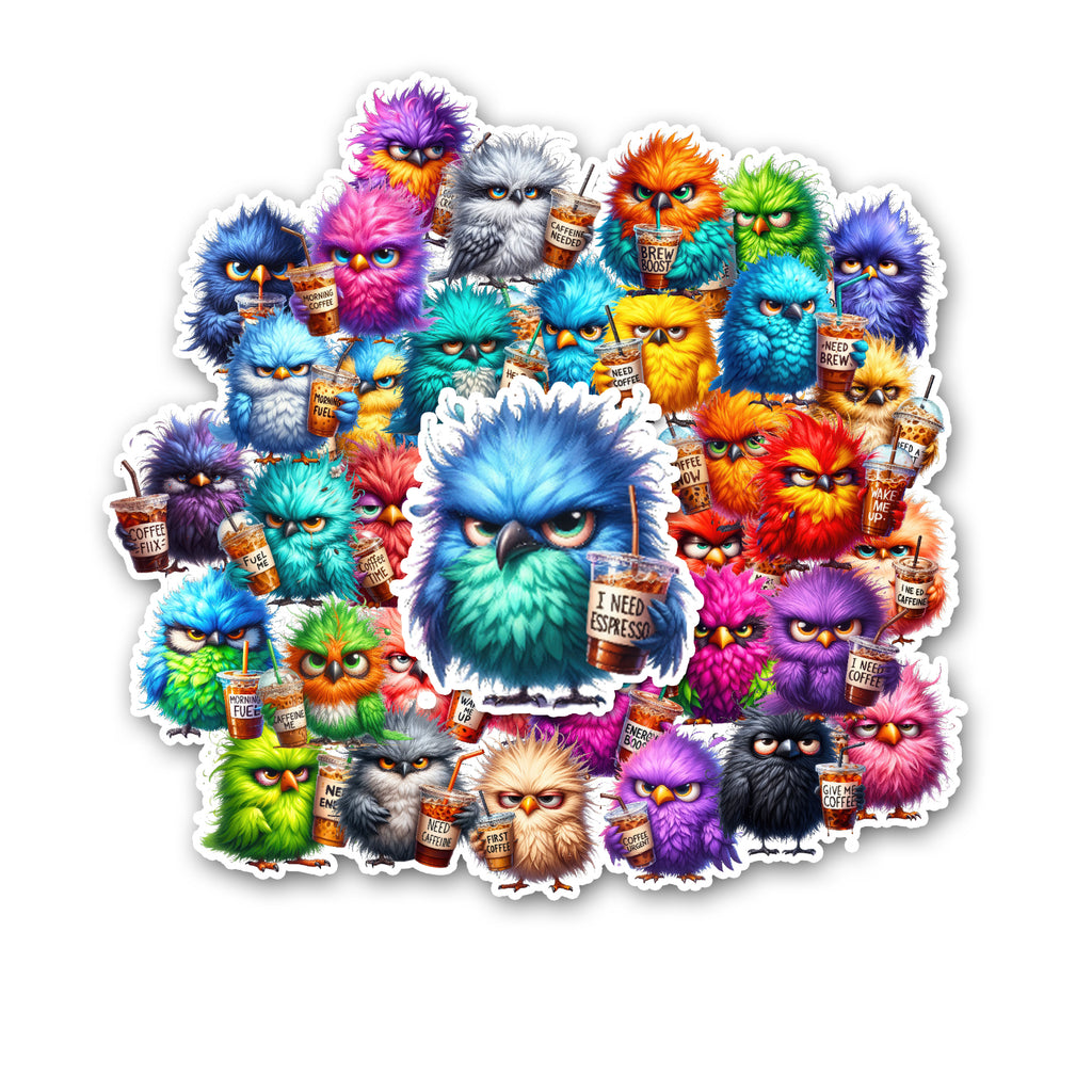 10 Grumpy Birds Handmade Stickers for Laptops, Journals, Notebooks, Scrapbooking