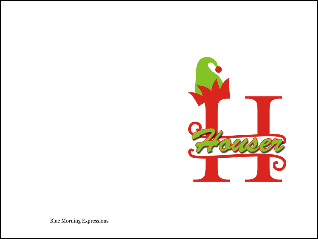 10 Personalized Monogram Christmas Cards Notecards Greeting Cards Elf Hat