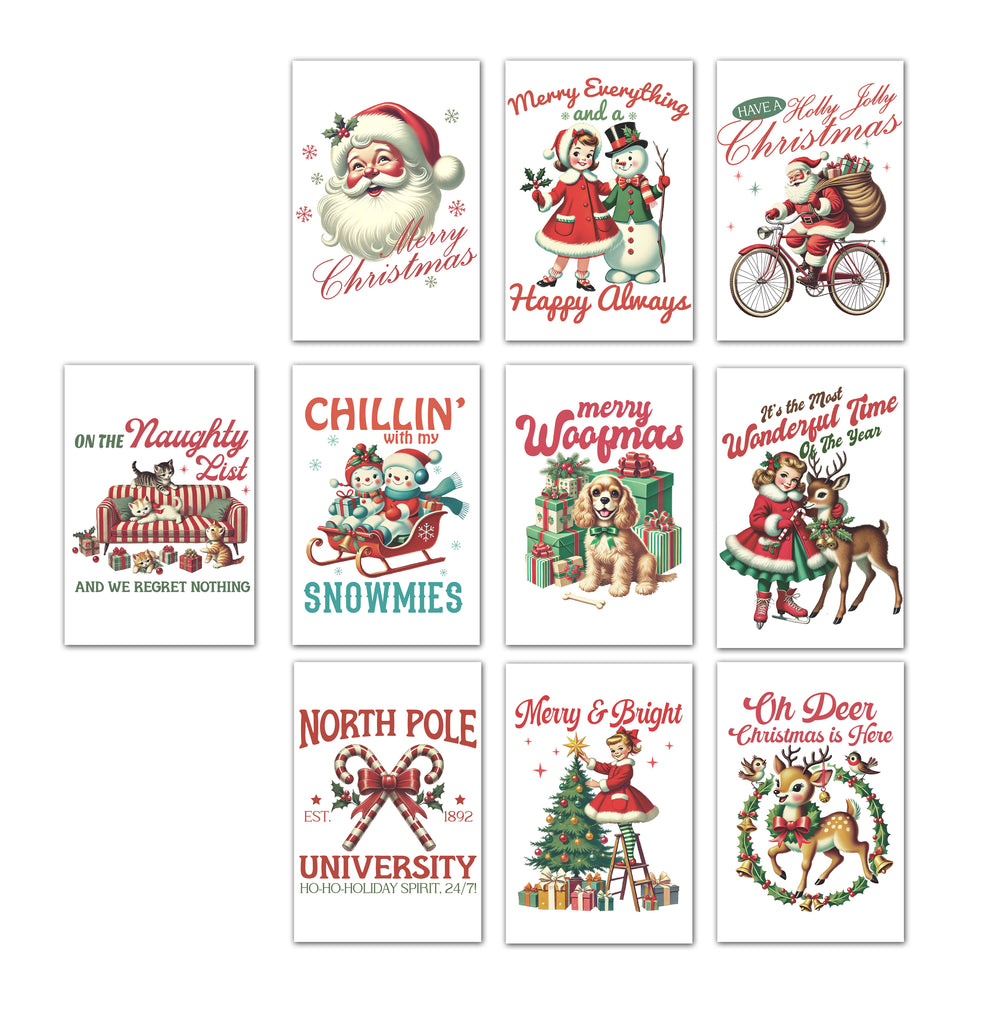 10 Vintage Christmas Handmade Notecards 4x6 with Envelopes Blank Folded w/Stickers
