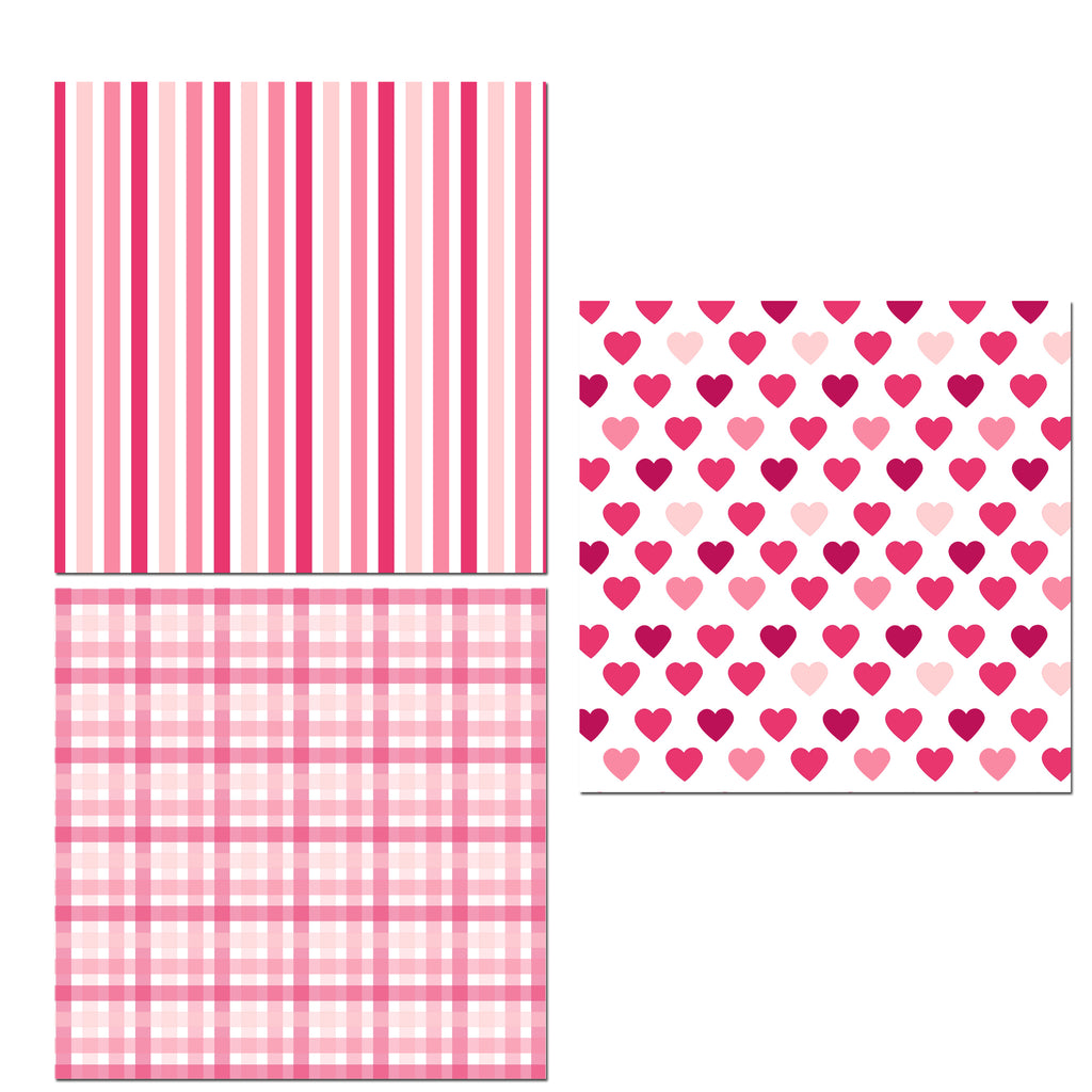 Cute pink and red hearts, stripes, and plaid designs