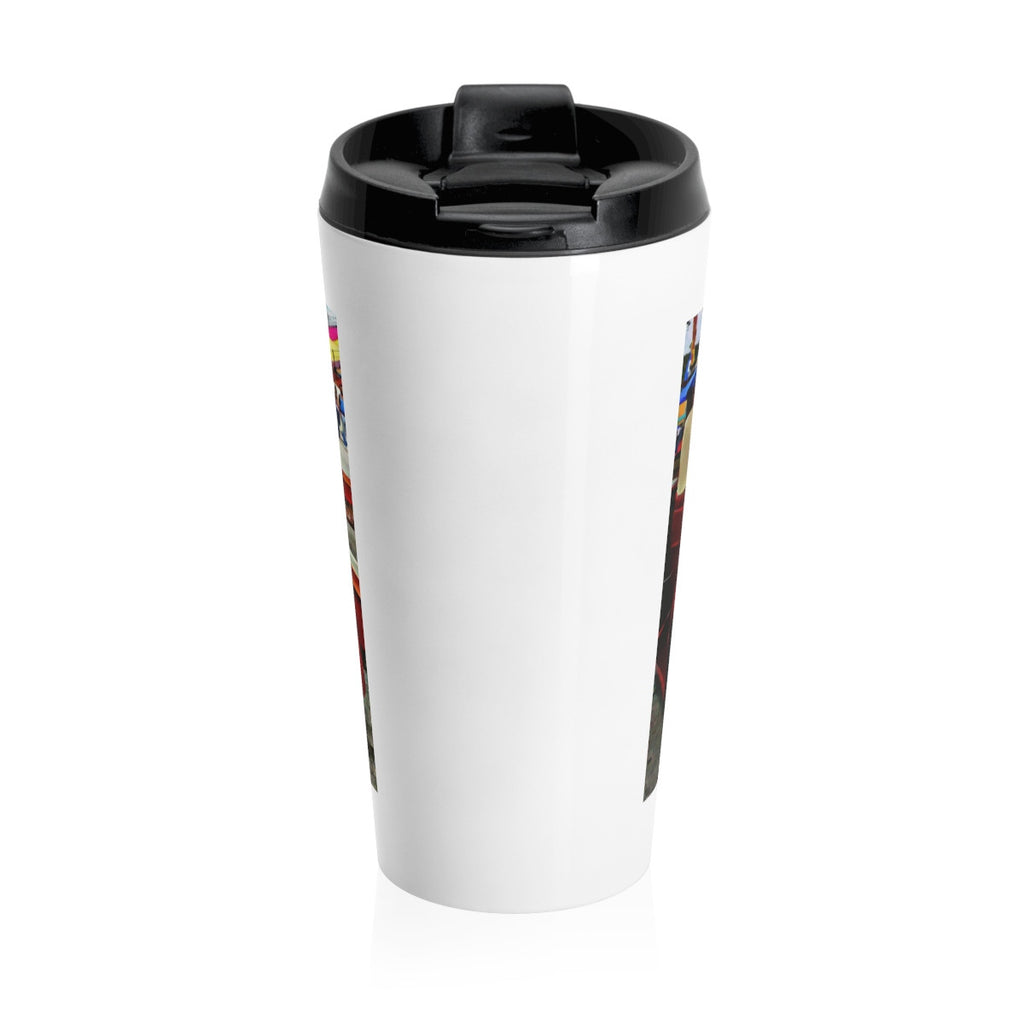Insulated stainless steel mug with removable lid will keep your drinks hot or cold for hours.