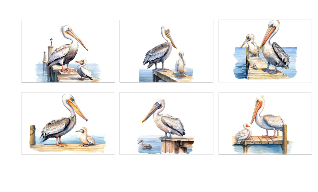 6 Pelicans Notecards All Occasion 4x6 with Envelopes Blank Folded