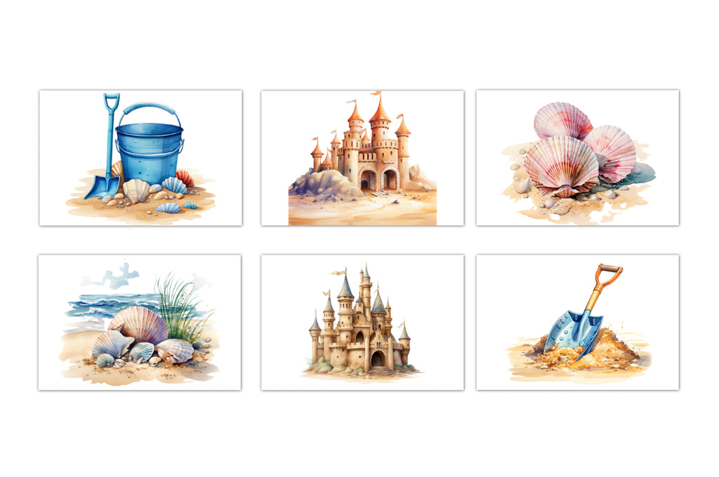 6 Sandcastle Notecards All Occasion 4x6 with Envelopes Blank Folded
