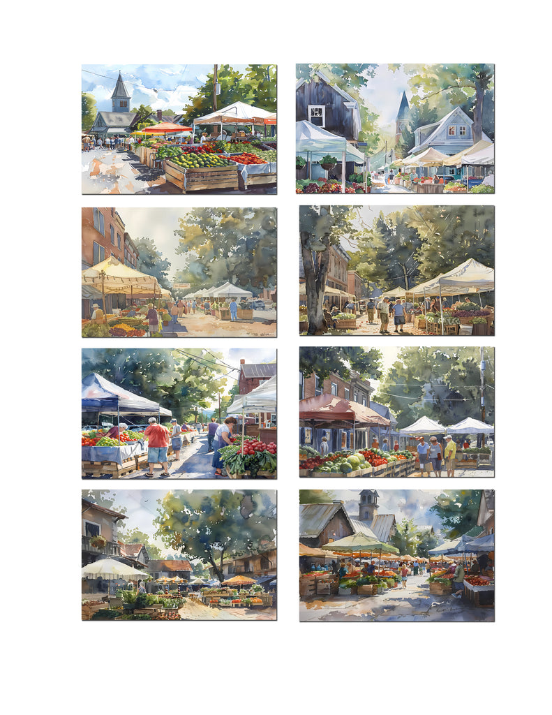 8 Small Town Markets Notecards All Occasion 4x6 with Envelopes Blank Folded