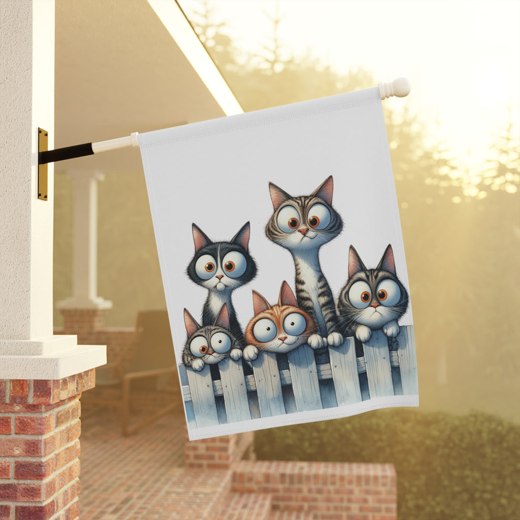 Cute Kittens on Fence Garden Flag & Porch Banner Cat Yard Decor Art