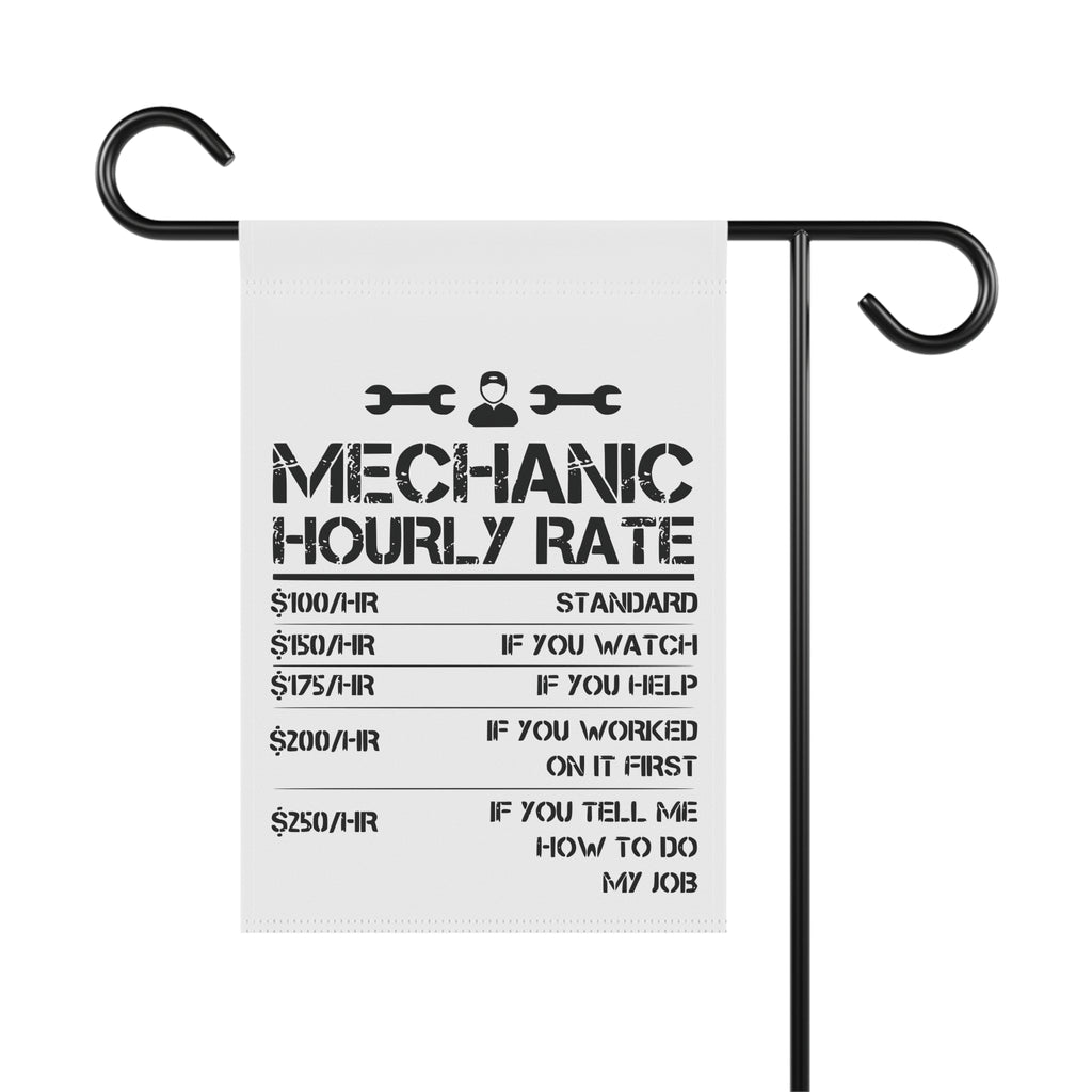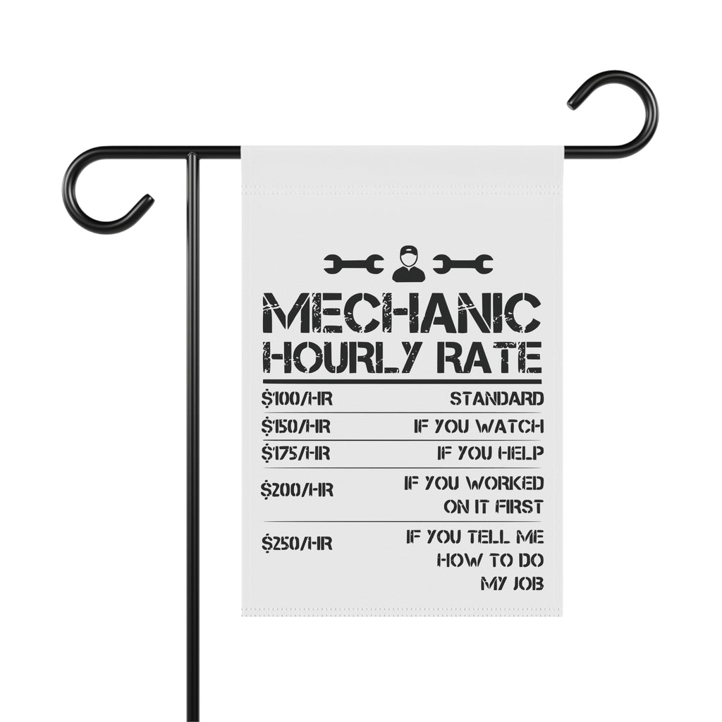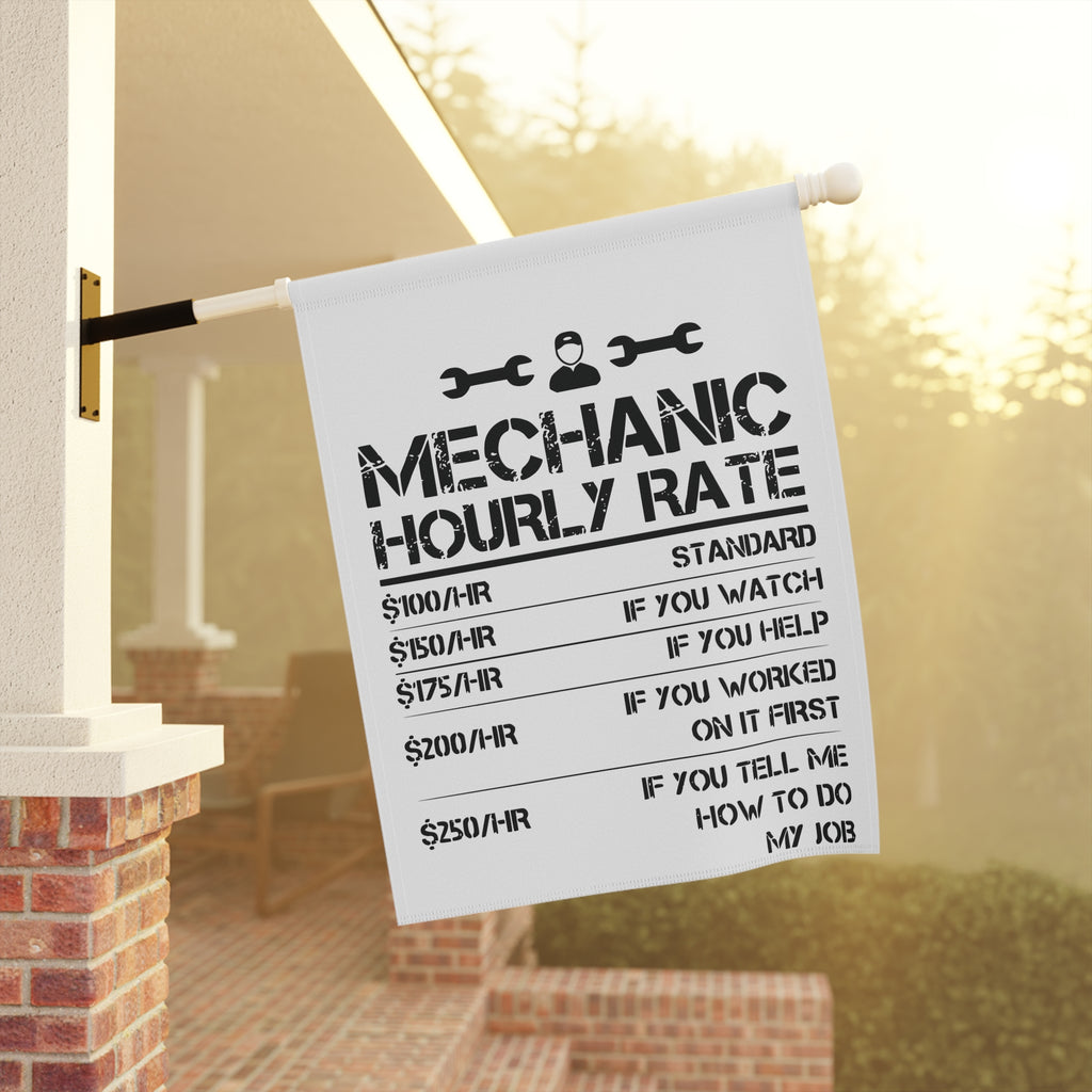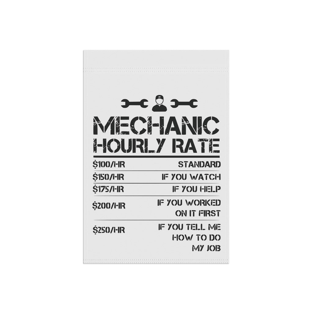 Funny Mechanic Hourly Rate Garden Flag Garage Humor Porch Banner Yard Art Decor