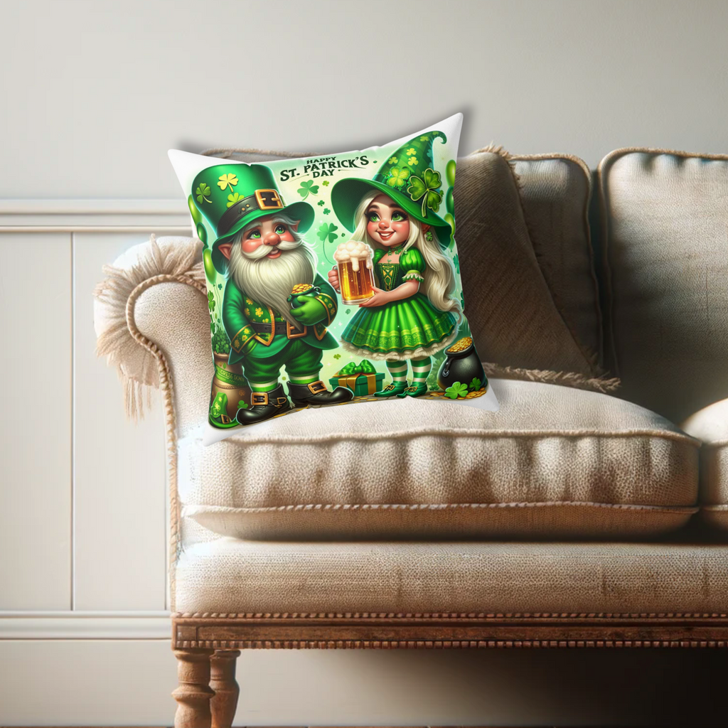 Add comfort and charm this St. Patrick's Day with our enchanting Gnome Pillow! Crafted from soft spun polyester, this double-sided print pillow is perfect for cozy relaxation after festive celebrations. Its vibrant colors and whimsical design bring Irish charm to any room, from the living room to the porch or a cozy she-shed. Ideal for gardeners and St. Patrick's Day enthusiasts, it’s the perfect statement piece for a touch of whimsy.