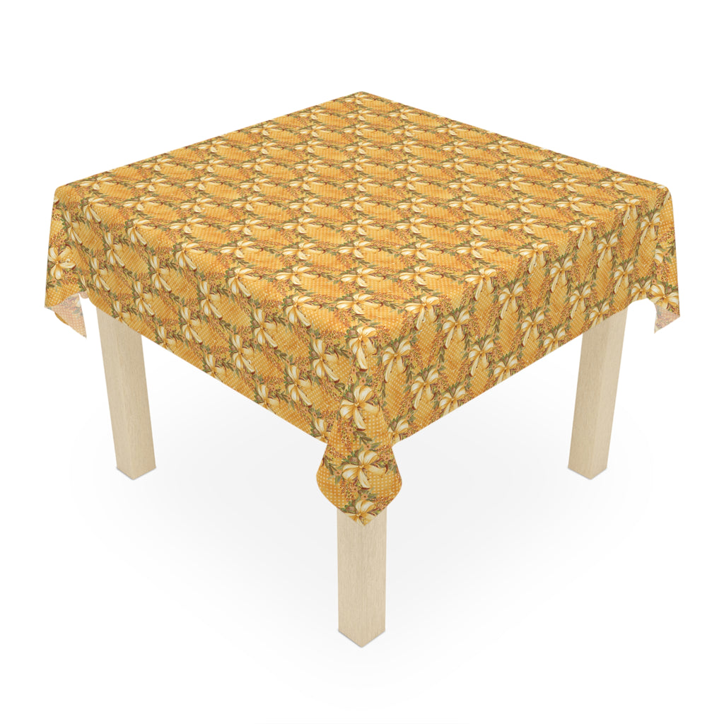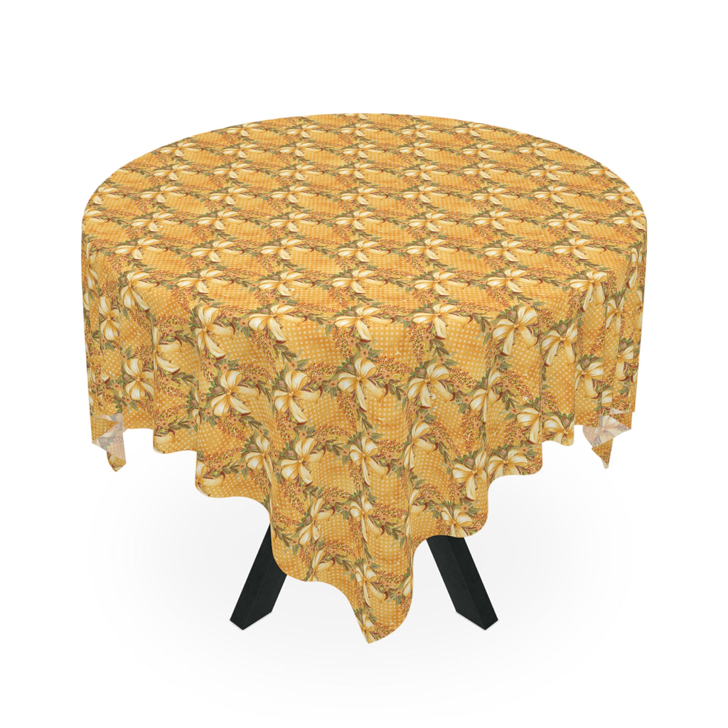 Gold Bow Pattern Tablecloth Holiday Décor