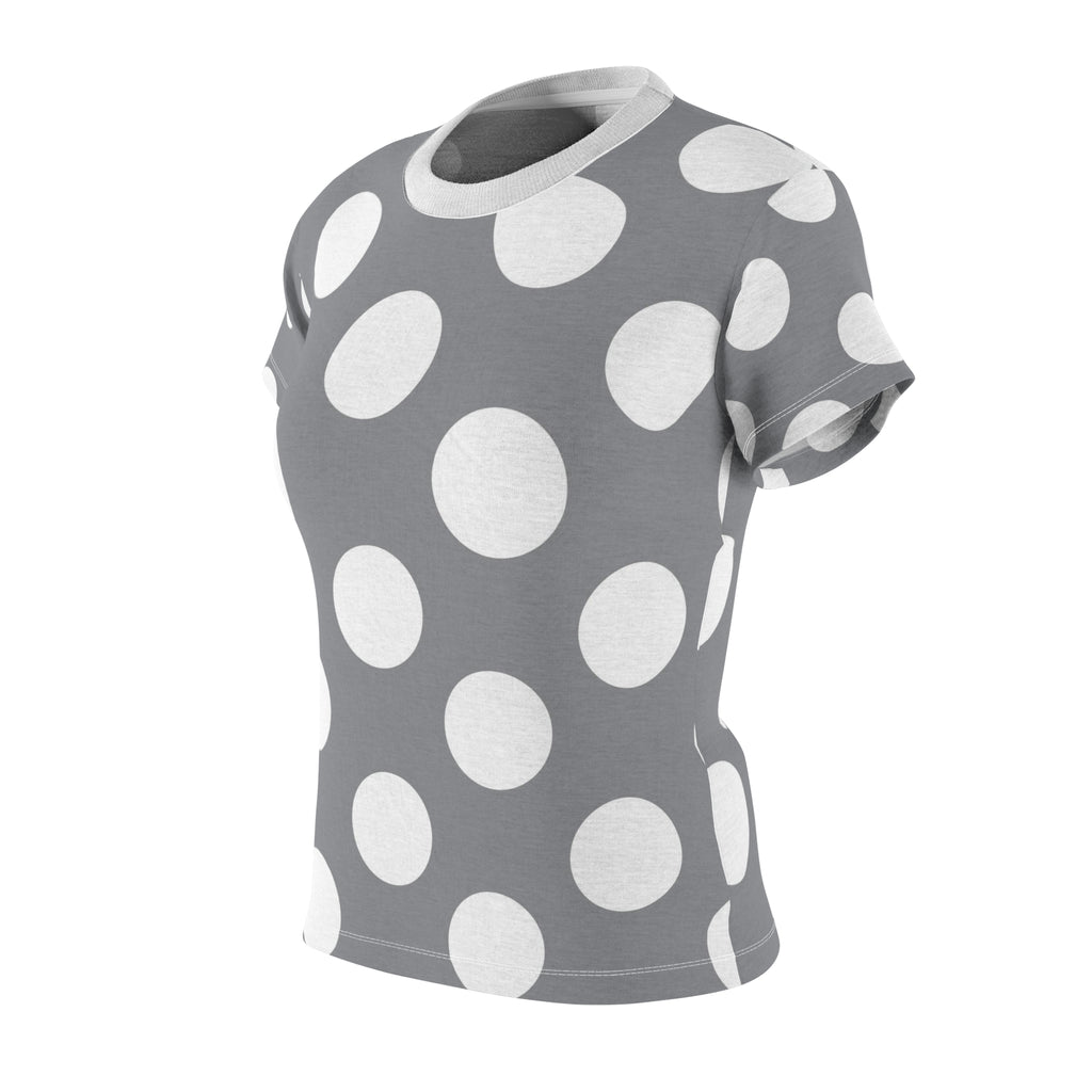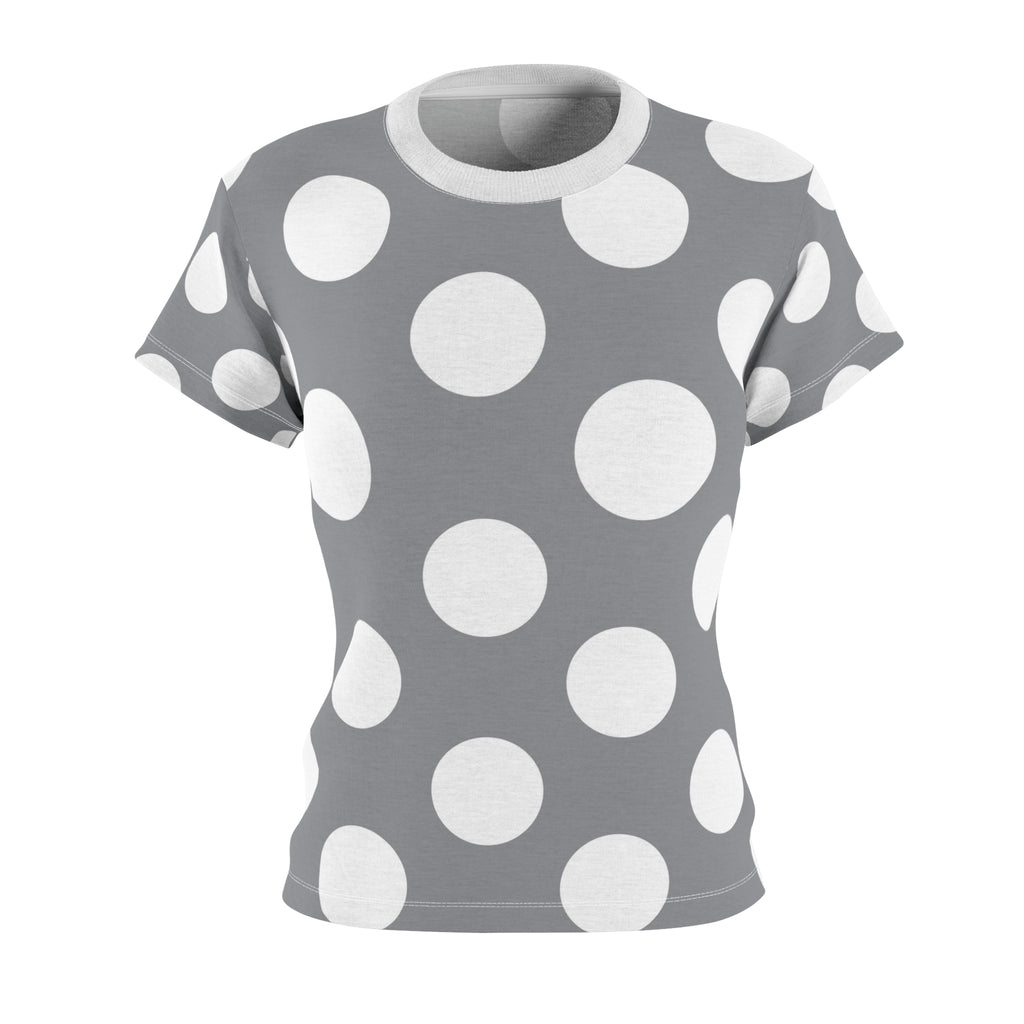 Grey White Polka Dot Women's Cut & Sew Tee T-shirt