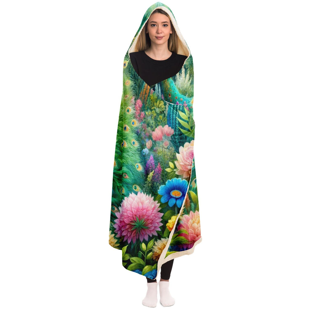 Wrap Yourself in Radiance: Bright Peacock & Flower Garden Hooded Blanket