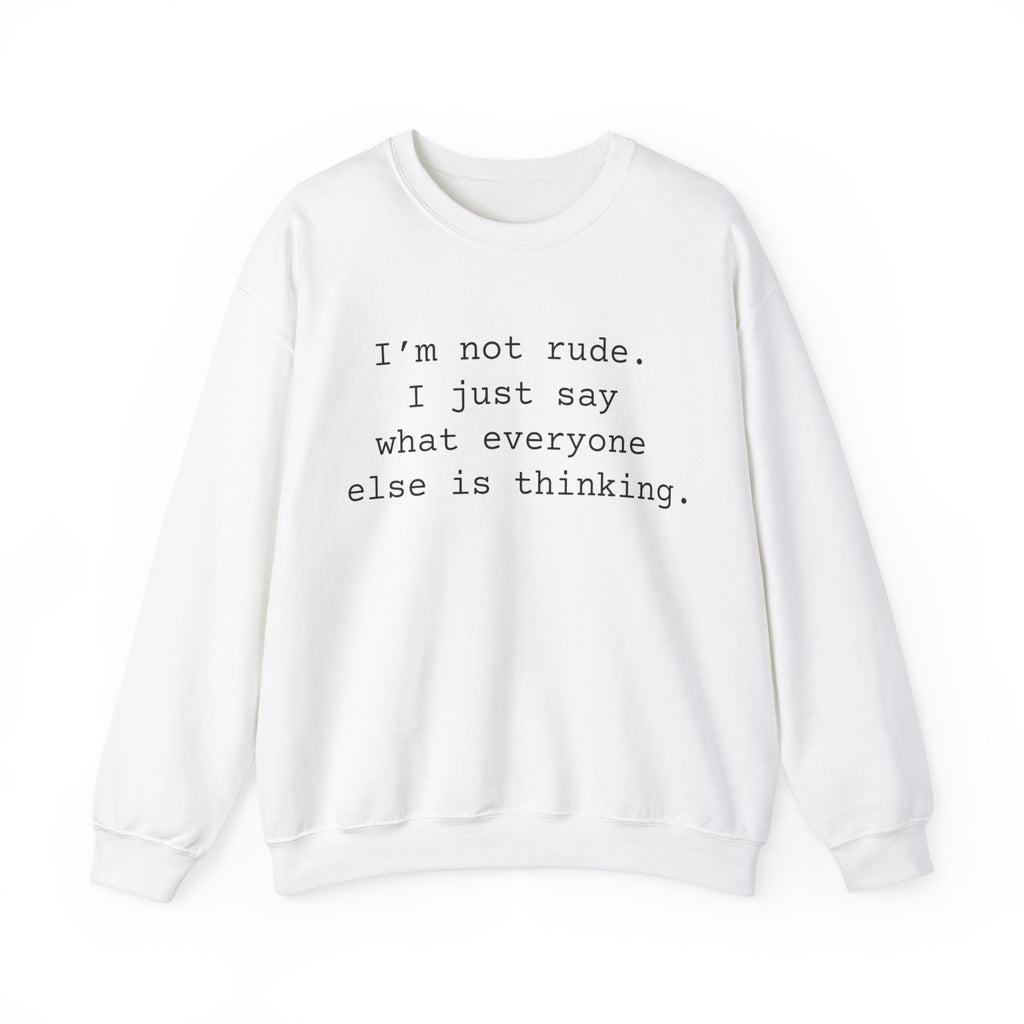 Be bold, not rude. Unleash what everyone is thinking. Not suitable for work, but perfect for family gatherings or any crowd that craves a sharp wit. Show off your sardonic style in this cozy sweatshirt. Whether people appreciate your sense of humor or not, you'll find yourself laughing when you wear it.Â
