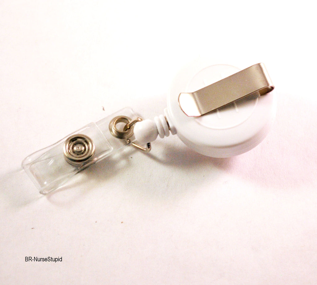 Make holding your badge easy with this retractable badge reel featuring a pert nurse and a snappy answer to unspoken questions: I can't fix stupid, but I can sedate it. The badge can be pulled out a little over two feet.