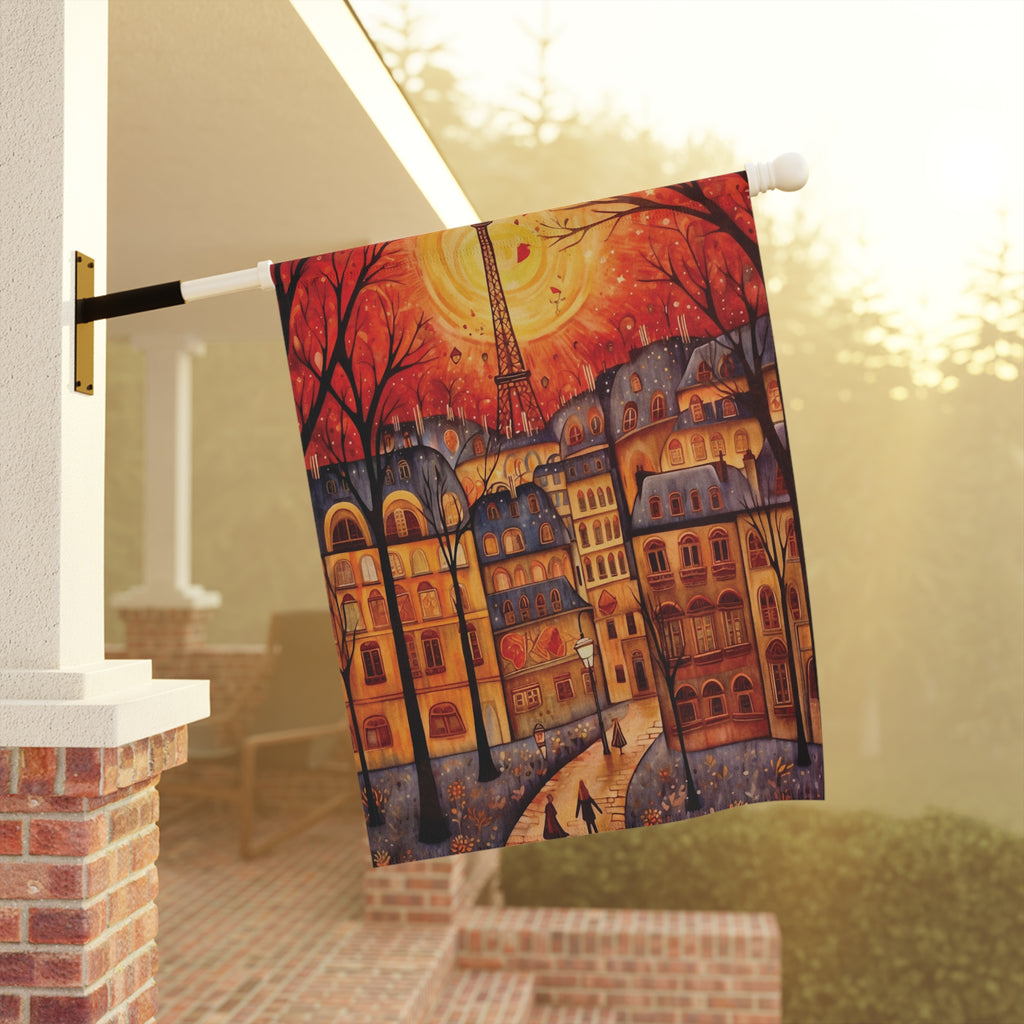 Paris France Eiffel Tower Autumn Skyline Garden Flag & Porch Banner Yard Art