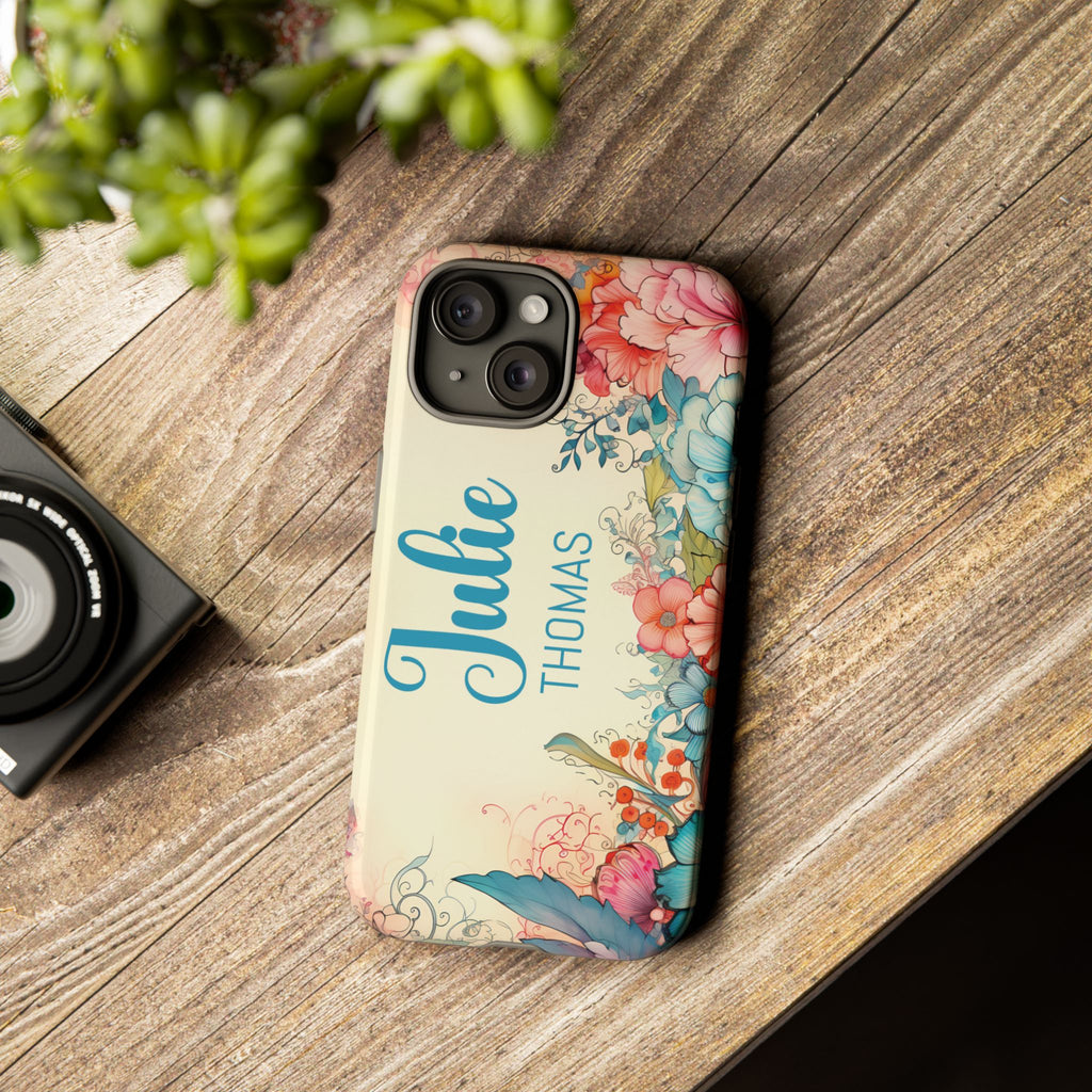 Personalized Floral Phone Case Custom Name Cover iPhone Samsung Pixel Gift