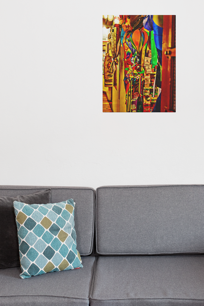 A Splash of Seattle's Soul The Pike Market at Seattle's bay edge is more than just a marketplace; it's a vibrant mosaic of cultures, arts, and flavors. This particular canvas captures a unique slice of the market, focusing on a colorful poster of hot air balloons outside a headshop. The allure of the bright colors juxtaposed against the depth of a long hallway offers a mesmerizing snapshot of the market's charm. Whether you're a fan of Starbucks, Marley posters, or the myriad of exotic shops dotting the area, this canvas embodies a piece of Seattle's bustling spirit.