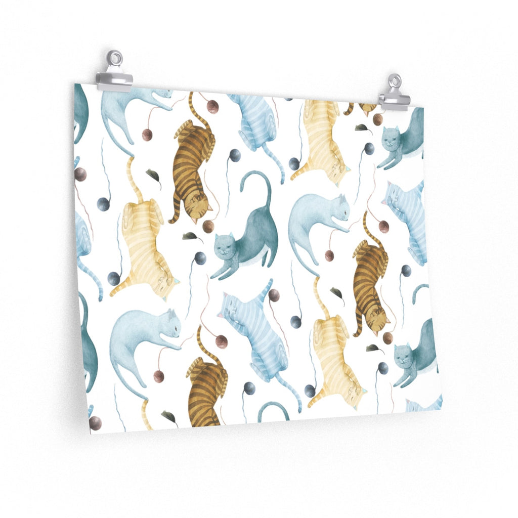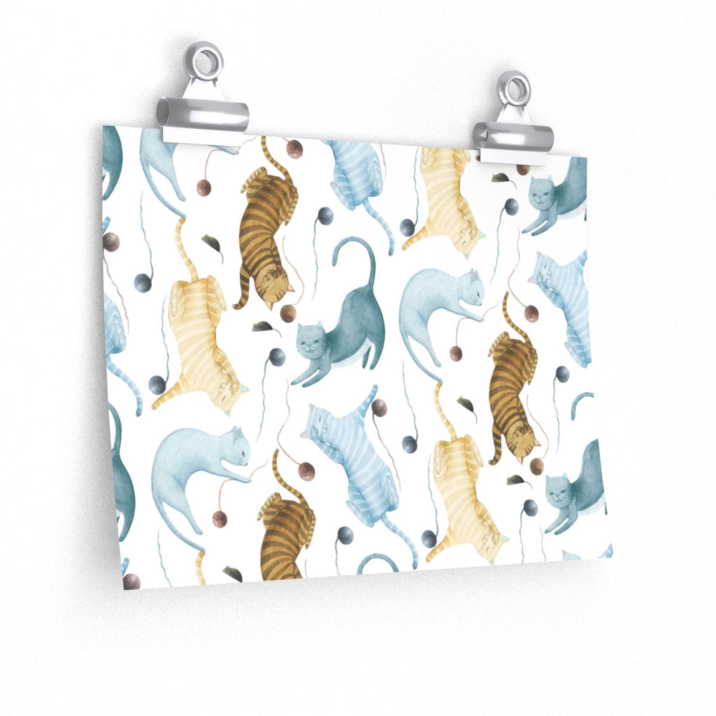 Playful Watercolor Cats Poster Print, Wall Art, Matte Finish Home Decor