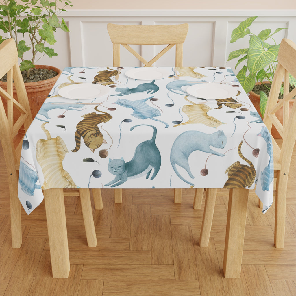Playing Cats Watercolor Art Tablecloth Décor Casual Dining