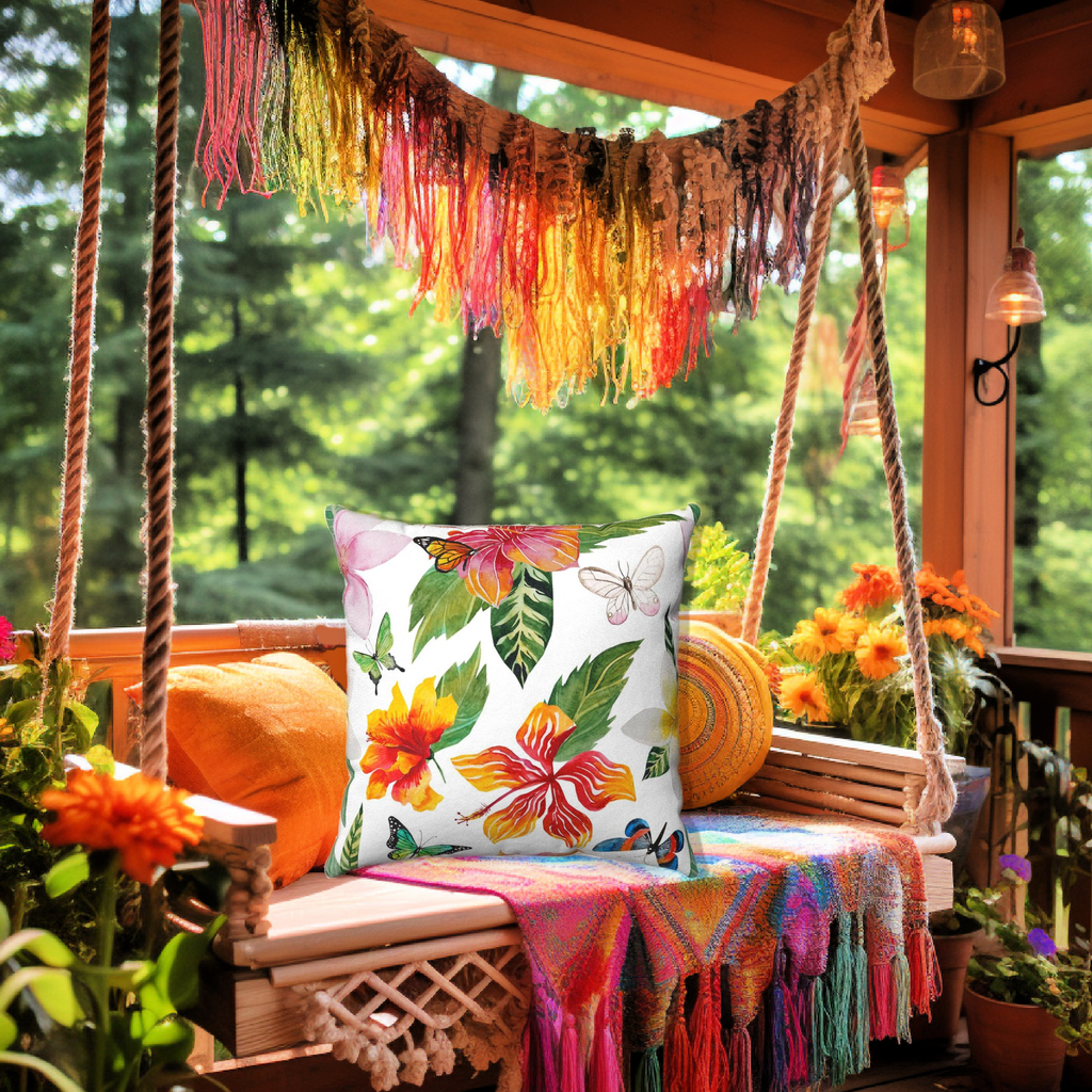 These adorable beach themed decorative throw pillows are filled with bright colorful hibiscus flowers that you find growing wild in the islands and carefully curated in the yards of those who have beach houses. Brilliant butterflies also flit about these attractive flowers.