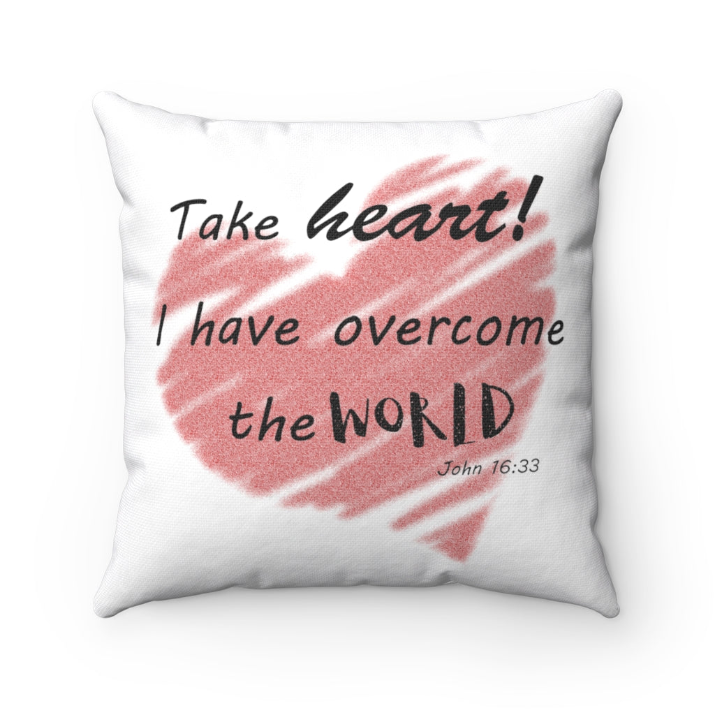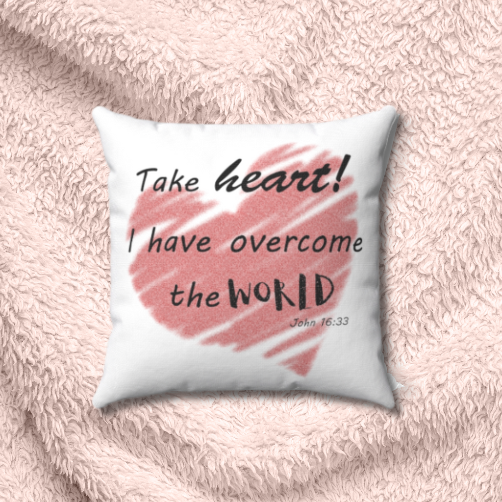 Take heart for I have overcome the world! John 16:33 is the perfect message in a world filled with turmoil and chaos. Whether you need to be reminded or your best friend needs an encouraging word, these throw pillows are the perfect way to bring heart to her.