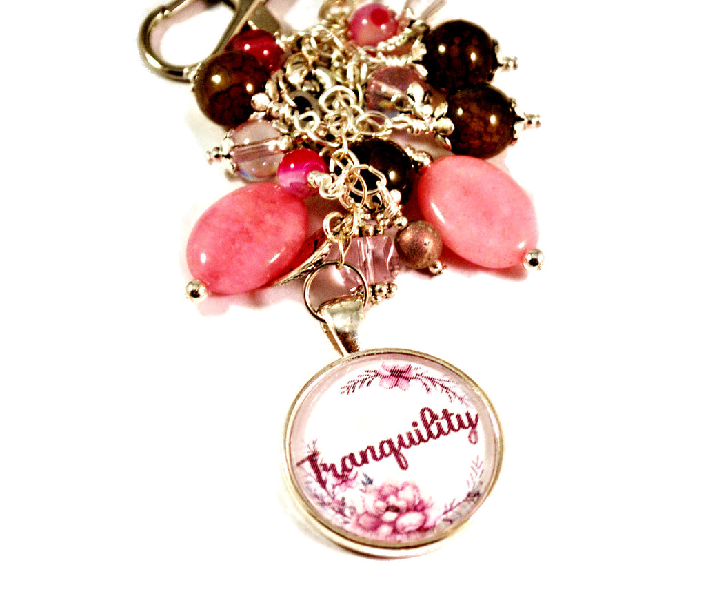 Tranquility Pink Women's Inspirational Keychain Beaded Keyrings for Women