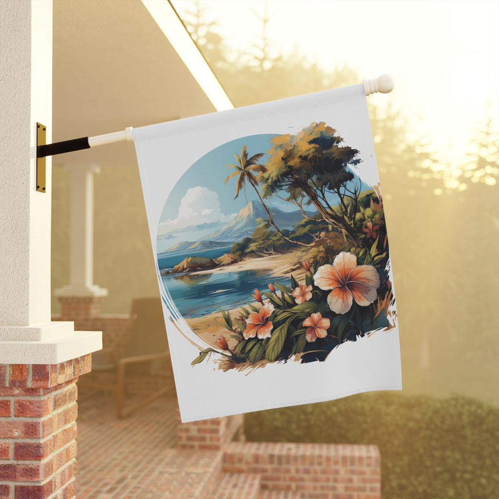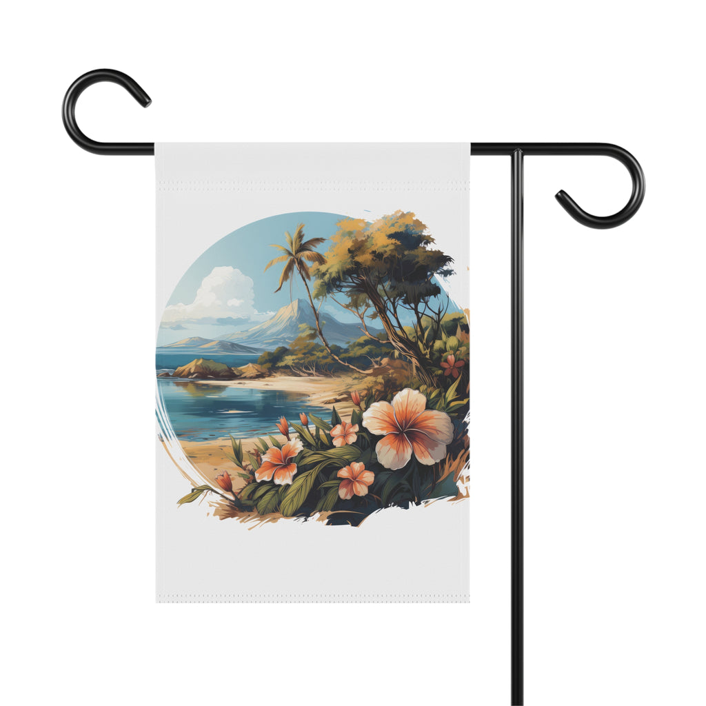 Tropical Island Beach Scene Garden Flag & Porch Banner Coastal Decor Yard Art