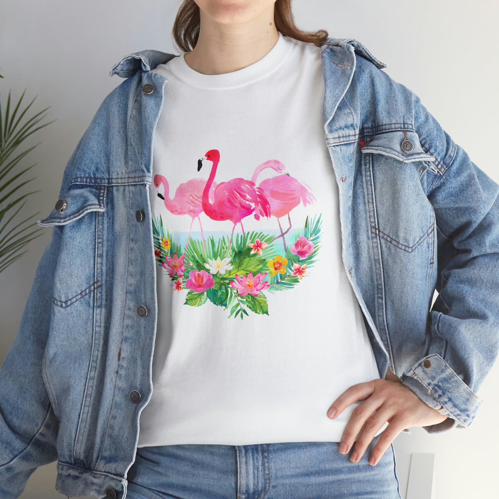 Tropical Pink Flamingo Florida T-Shirt – Unisex Heavy Cotton Tee
