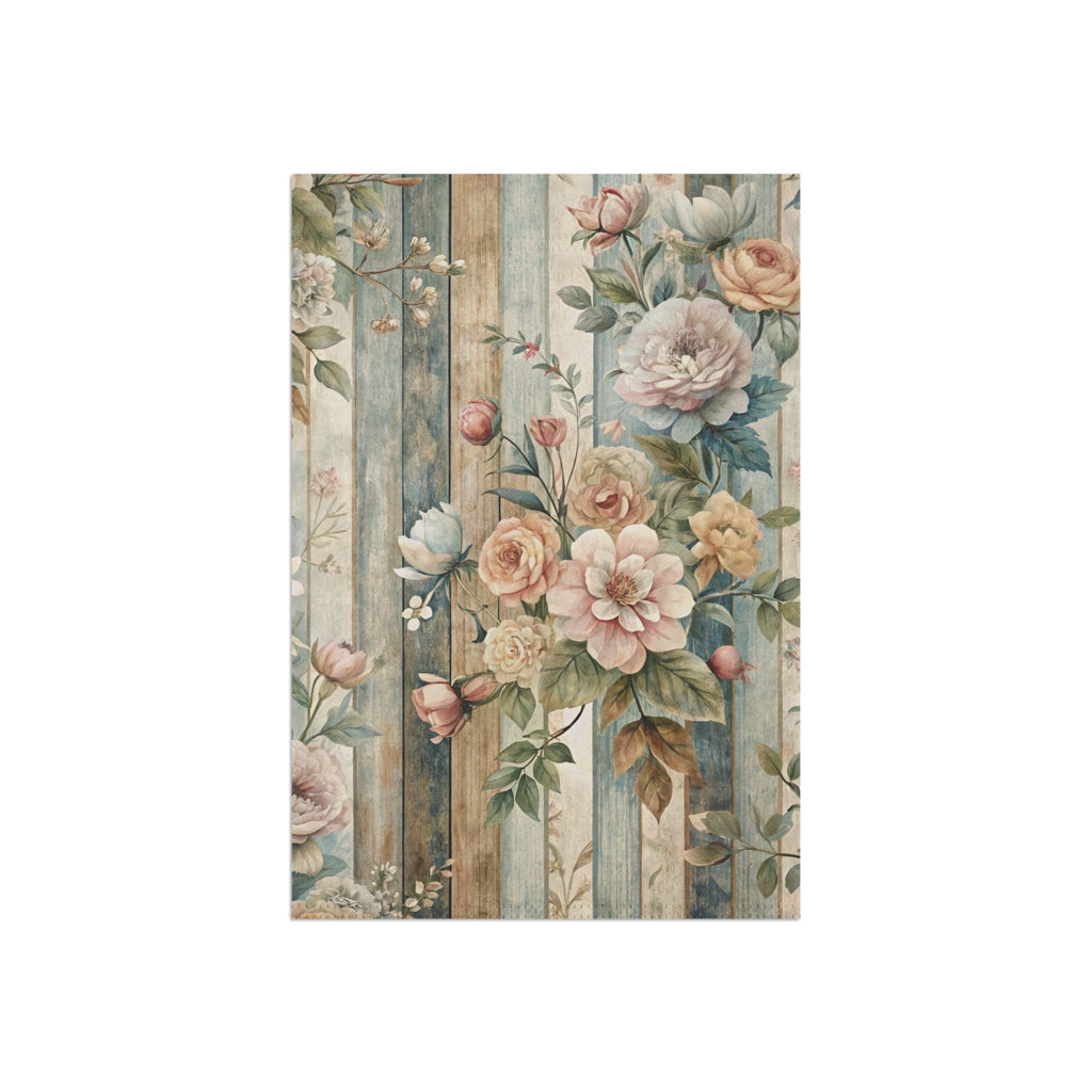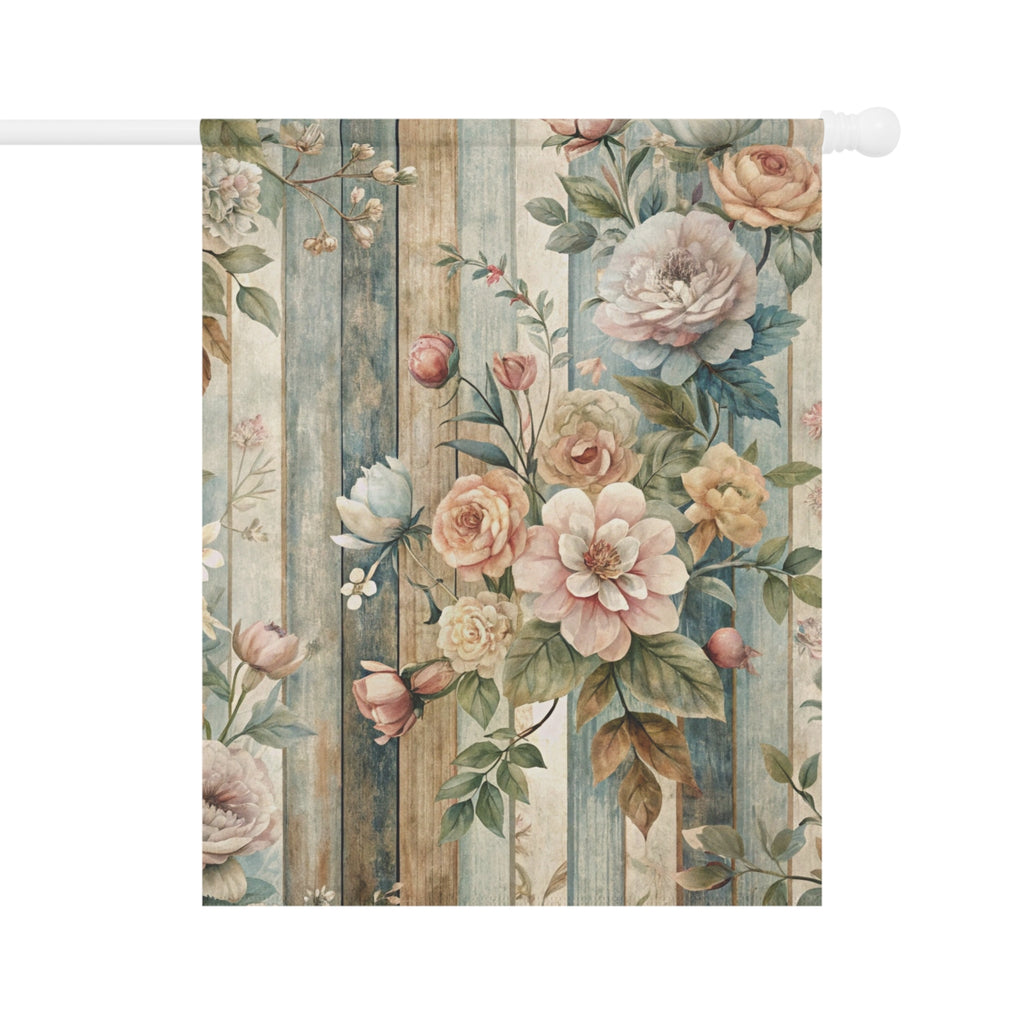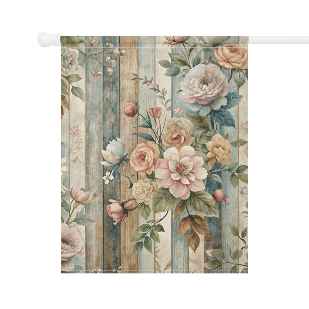 Vintage Floral Wood Plank Garden Flag Cottage Spring Porch Banner