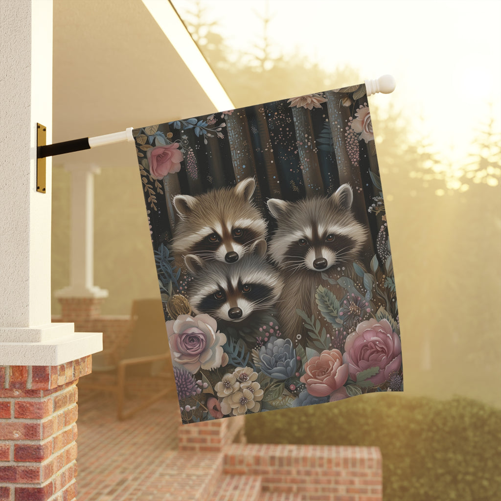 Woodland Raccoon Family Garden Flag & Porch Banner Floral Decor Yard Art